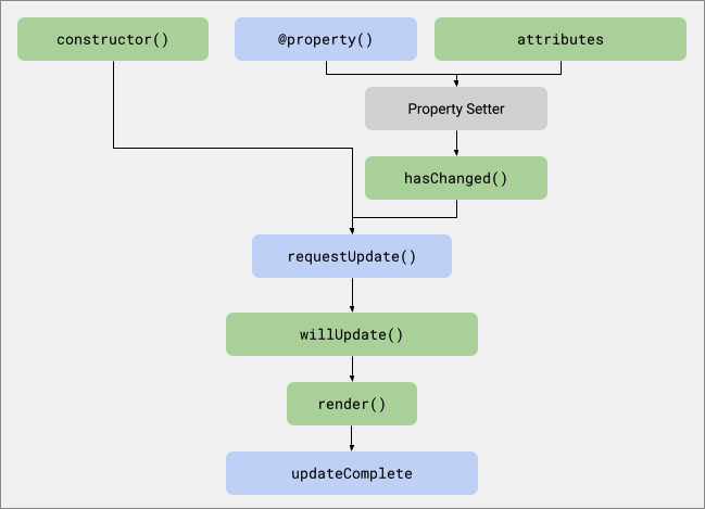 Any changes that would normally trigger an update which occur while a component is updating do not schedule a new update. This is done so that property values can be computed during the update process. Properties changed during the update are reflected in the changedProperties map, so subsequent lifecycle methods can act on the changes.
